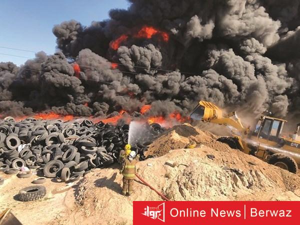 قوة الإطفاء تحاول السيطرة على حريق إطارات ضخم بمنطقة ارحية