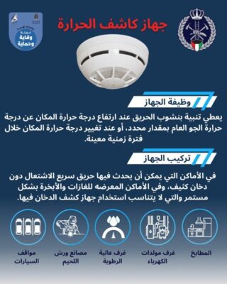 وفي منشور توعوي نشرته على منصة «اكس»، أكدت أن وظيفة الجهاز اعطاء تنبيه بنشوب الحريق عند ارتفاع درجة حرارة المكان عن درجة حرارة الجو العام بمقدار محدد او عند تغيير درجة حرارة المكان خلال فترة زمنية معينة.