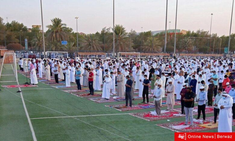 توافد مئات المسلمين لتأدية صلاة العيد الإثنين في بريطانيا داخل ملعب كرة قدم في سابقة تحدث لأول مرة بالمملكة المتحدة.