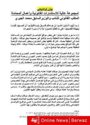 أصدر المكتب القانوني للوزير السابق علي ناصر الجبري بيانا رسميا وضع فيه النقاط على الحروف وأوضح فيه ما يتم تداوله عبر مواقع التواصل الاجتماعي.