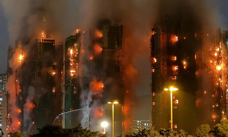 مشاهد مرعبة …النيران تلتهم مباني هونغ كونغ ومصرع 13 شخصا!
