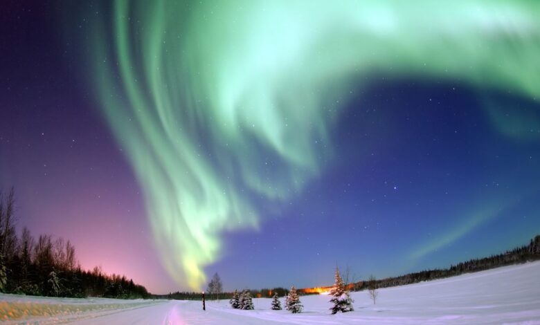 وتحدث ظاهرة الشفق القطبي عندما يتفاعل المجال المغناطيسي للأرض مع جزيئات الرياح الشمسية.