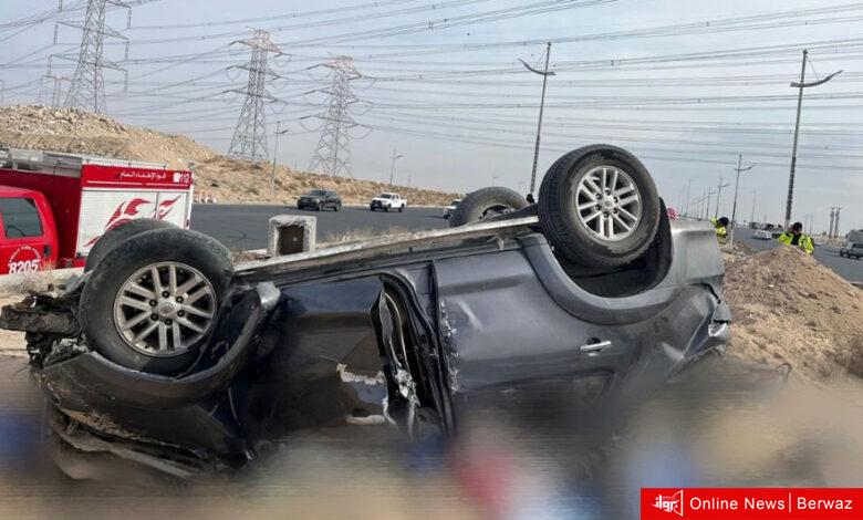 وفاة وإصابتان في حادث انقلاب مركبة على طريق المطلاع