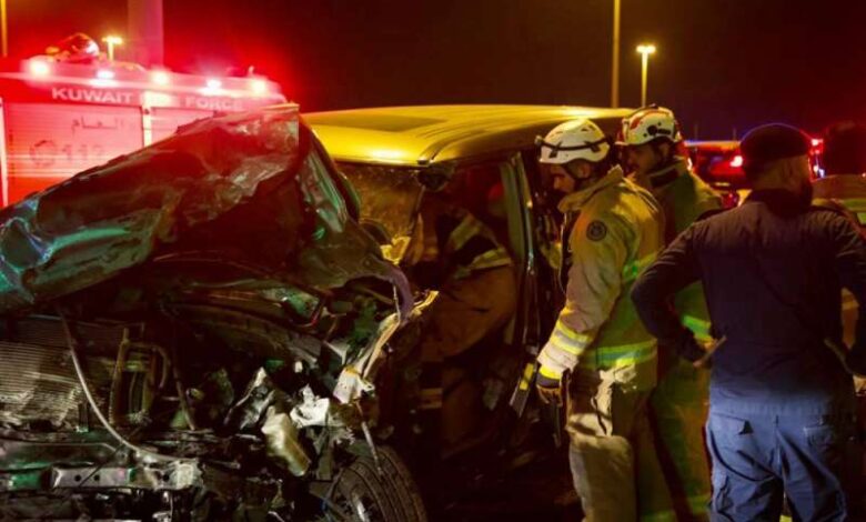 فيما ذكرت إدارة العلاقات العامة والإعلام بقوة الإطفاء العام أن غرفة العمليات تسلمت بلاغًا يفيد وقوع حادث تصادم بين مركبتين على طريق الفحيحيل مقابل منطقة سلوى باتجاه مدينة الكويت ووجود أشخاص محشورين، وعلى أثره تم توجيه فرقتي إطفاء من مراكز البدع والإنقاذ الفني ليتضح وفاة 3 أشخاص مواطن وخليجي وآسيوية وإصابة وافد آخر آسيوي.