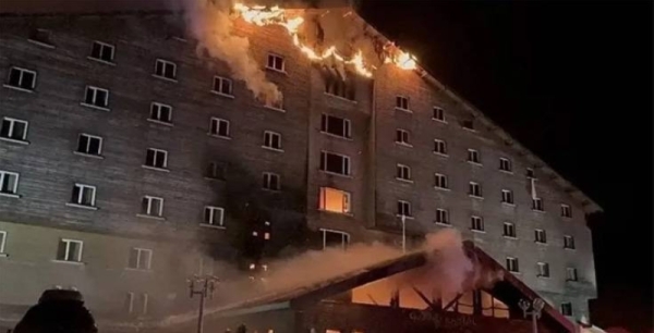 وأوضح أن الحريق اندلع في الفندق الواقع في منتجع كارتالكايا للتزلج عند الساعة 3:27 صباحاً بتوقيت غرينيتش.
