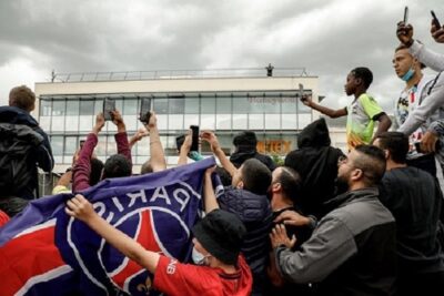 وتواجد عدد كبير من مراسلي القنوات التليفزيونية والصحفيين، إلى جانب عدداً كبير من مشجعى النادى الفرنسى في إستقبال ميسى وأسرتة في مطار لوبورجية.
