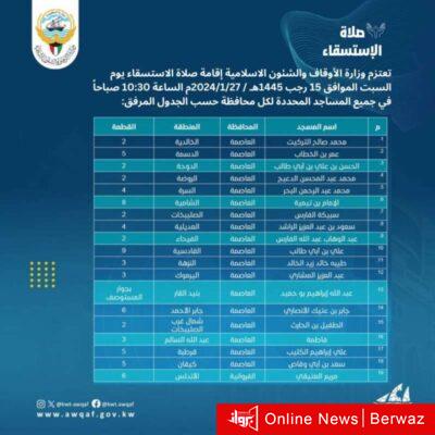 ننشر لكم قائمة المساجد المحددة لإقامة صلاة الاستسقاء