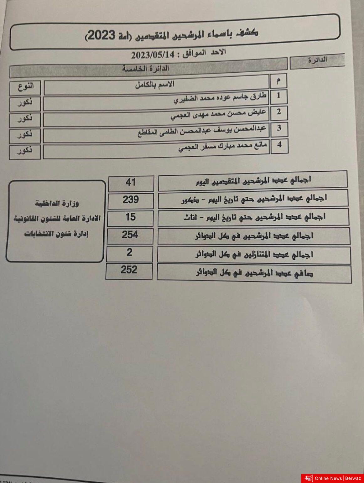 أعلنت إدارة الانتخابات غلق باب الترشح لانتخابات مجلس الأمة 2023 بعد نهاية اليوم العاشر والأخير ليبلغ العدد الإجمالي بجميع الدوائر 252 مرشحًا بينهم 15 مرشحة.