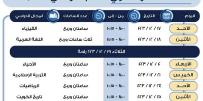 والجدير بالذكر أن الاختبارات تنطلق يوم الأحد الموافق 17 ديسمبر 2023 و تستمر حتى تاريخ 15 يناير 2024.