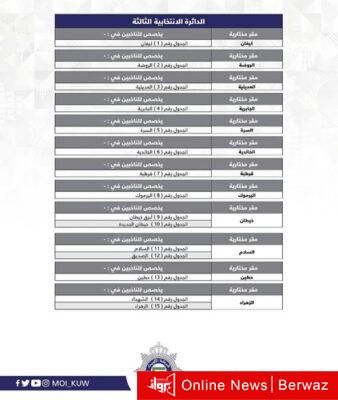 وتسهيلا للمواطنين، فإن الجداول المخصصة للقيد موزعة بالدوائر الانتخابية على النحو التالي: