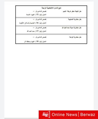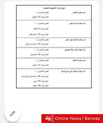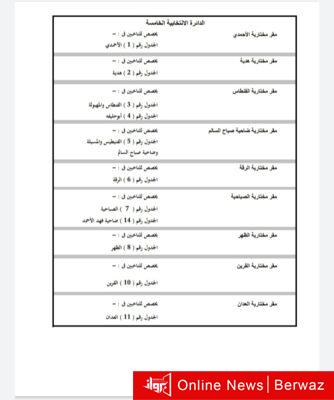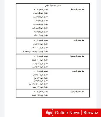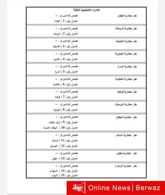 وفيما يلي الجداول المخصصة للقيد موزعة بالدوائر الانتخابية على النحو التالي: