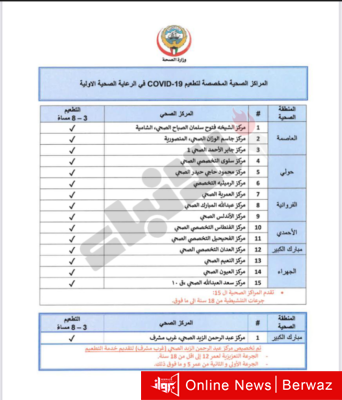 أعلنت وزارة الصحة عن بداية حملة تطعيم ضد كوفيد-19 الأول من فبراير في 16 مركز صحي في جميع المناطق الصحية.