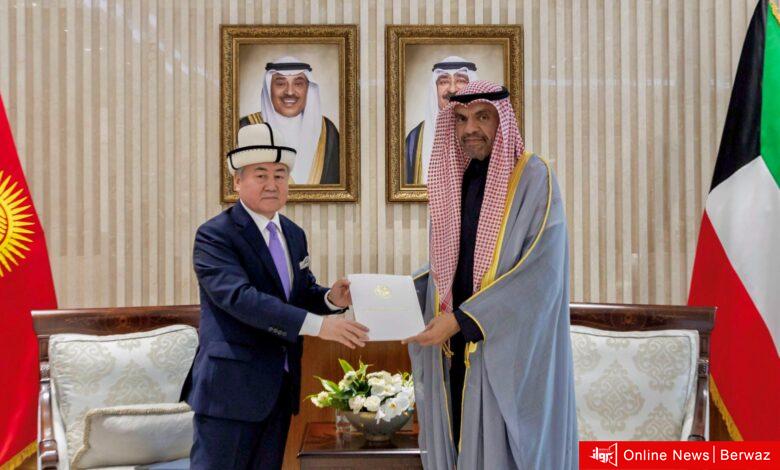كما تسلم سمو الشيخ أحمد عبدالله الأحمد الصباح رئيس مجلس الوزراء رسالة خطية مماثلة من رئيس مجلس وزراء قيرغيزستان رئيس إدارة رئاسة الجمهورية القيرغيزية أديلبيك قاسماليف.