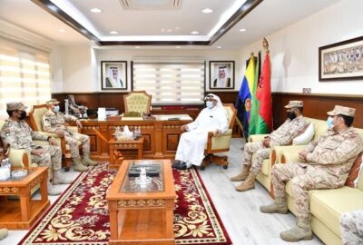بعد ذلك انتقل الوزير الجابر إلى هيئة القضاء العسكري حيث كان في استقباله لدى وصوله رئيس الهيئة العميد حقوقي مبارك الخرينج، وعدد من قياداتها.