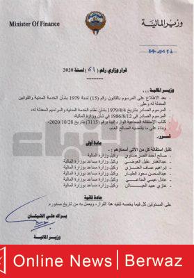 أفصح وزير المالیة براك الشیتان عن قرار قبول الاستقالة المقدمة من وكیل وزارة المالیة وبعض الوكلاء المساعدين.