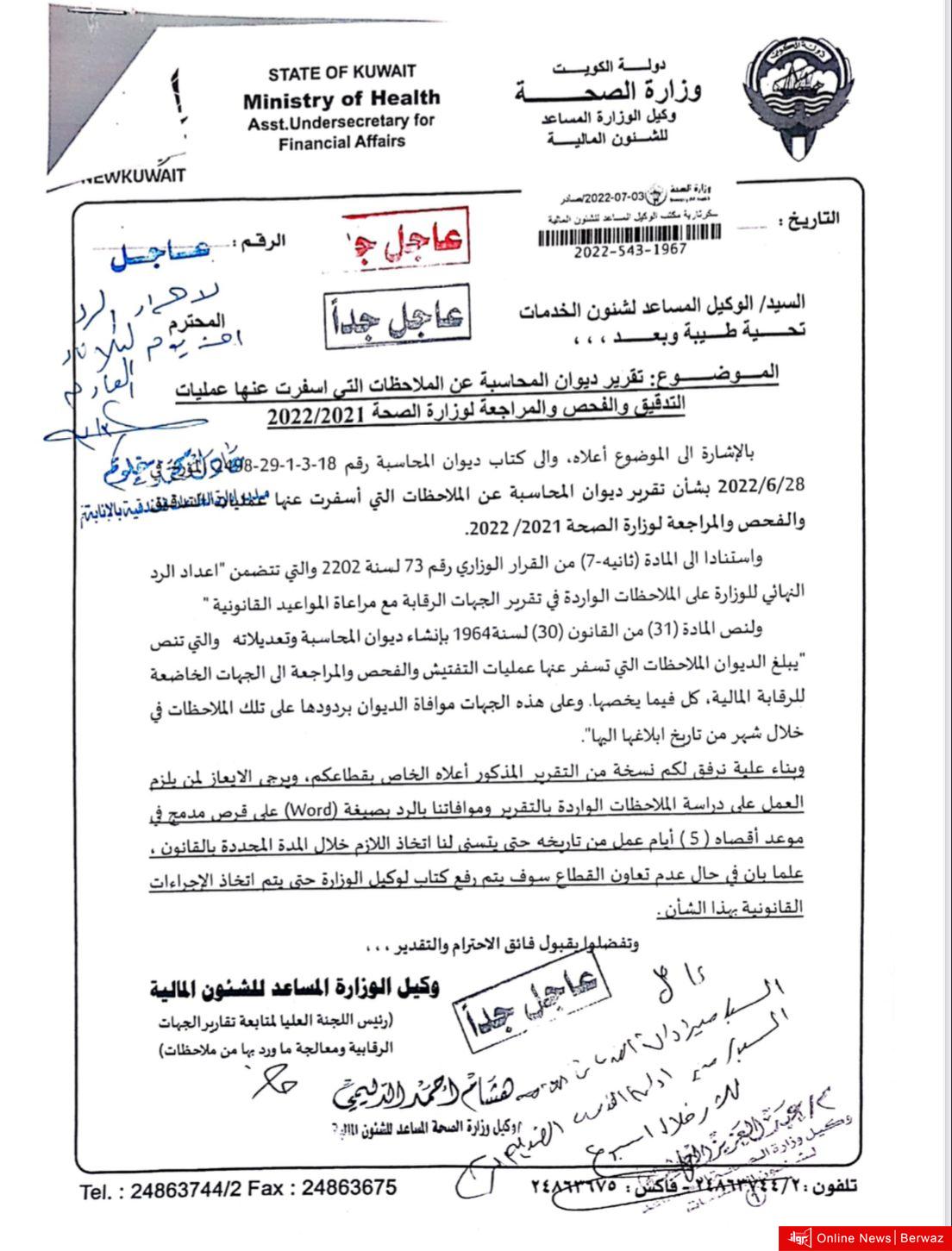 لذلك مطلوب من الجهات الرقابية ووزير الصحة الجديد تصويب هذه الأخطاء والحفاظ على المال العام والمسئولية كذلك تقع على أعضاء مجلس الامة الكويتي للتحقق من حقيقة هذا الموضوع.