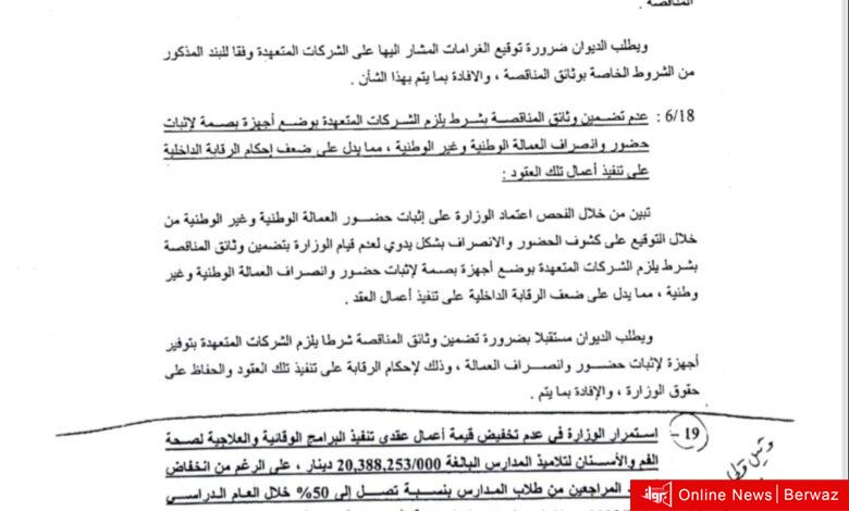 لماذا لم يتم تطبيق ملاحظات ديوان المحاسبة على عقود النظافة الحالية ومنها وضع أجهزة بصمه لحضور وانصراف هذه الاعداد المهولة من العمالة…!!!