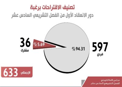 633 إقتراحاً برغبة قدمه النواب في دور الإنعقاد الأول لمجلس الأمة الكويتى