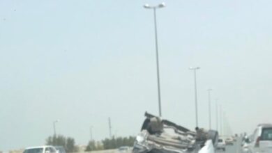 حادث انقلاب مروع لمركبة على طريق الجهراء