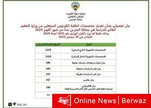 أعلن المكتب الثقافي الكويتي في مملكة البحرين البيان التفصيلي بشأن تعديل المخصصات المالية للطلبة الكويتيين المبتعثين من وزارة التعليم العالي…
