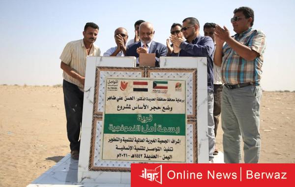 قام محافظ الحديدة اليمنية الحسن طاهر اليوم الأحد بوضع حجر أساس مشروع بناء قرية “بسمة أمل” السكنية النموذجية للنازحين في…