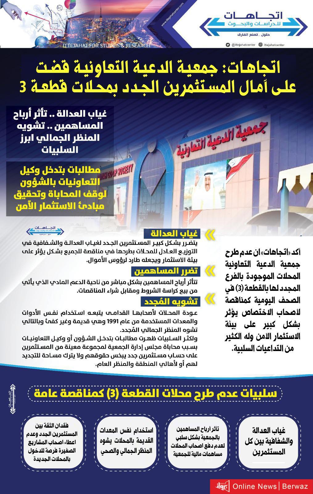 أكد مركز اتجاهات للدراسات والابحاث في تقريره الصادر عن الاستثمار في الجمعيات التعاونية عن اخلال جمعية الدعية بمبدأ الفرصة العادلة…