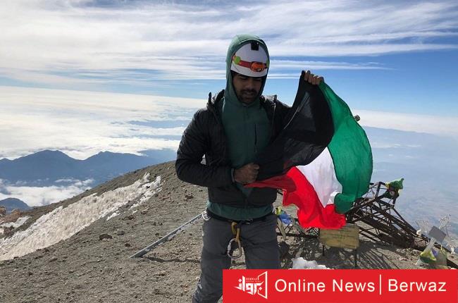 يوسف الرفاعي يرفع علم الكويت على أعلى قمة بركانية بالعالم