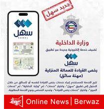 أعلنت وزارة الداخلية عن إضافة خدمات جديدة عبر تطبيق “سهل” تشمل إمكانية إصدار وتجديد رخص القيادة للعمالة المنزلية التي تعمل…