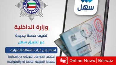 أفصحت وزارة الداخلية عن إضافة خدمة إصدار إذن غياب للعمالة المنزلية والكفيل كويتي بشكل حصري من خلال على تطبيق (سهل).…