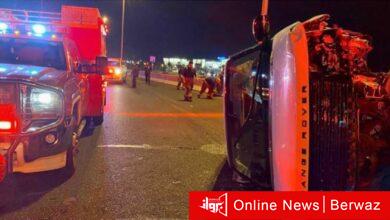 حادث تصادم وإنقلاب على طريق الفحيحيل يتسبب في إصابة مواطن