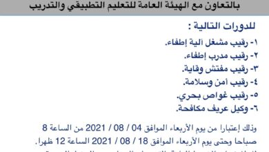 كشفت قوة الإطفاء العام عن تنظيم 6 دورات بالتعاون مع الهيئة العامة للتعليم التطبيقي والتدريب وذلك في رتبة رقيب لوظائف:…