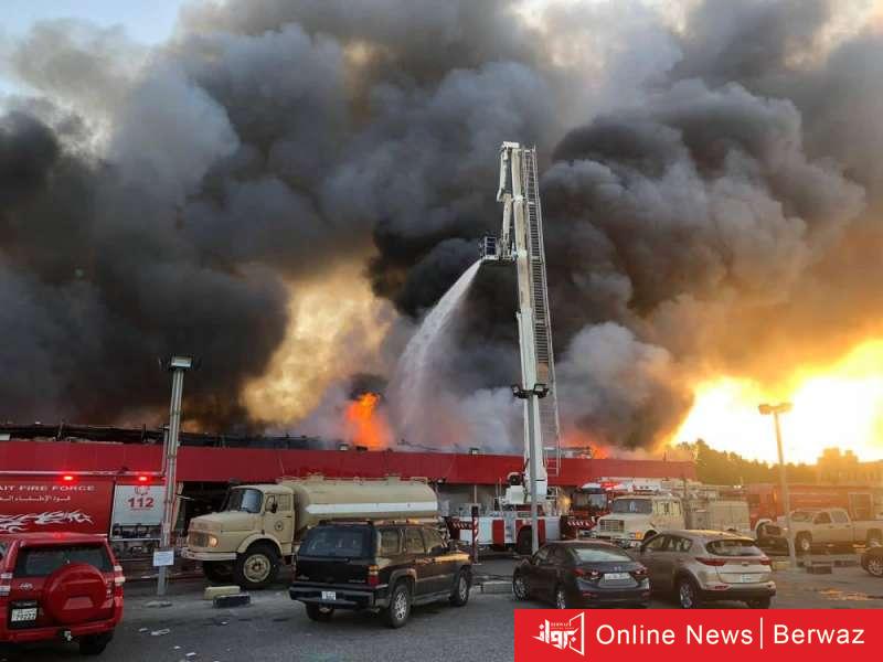 الإطفاء تخمد نيران سوق مركزي في «الشويخ الصناعية».. ومازال شخص مفقود داخل الحريق