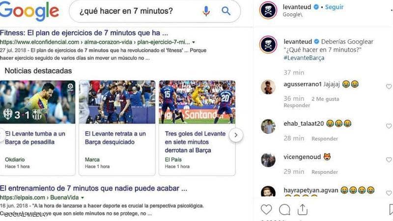 ليفانتي يسخر من برشلونة على غوغل بنكتة الـ7 دقائق