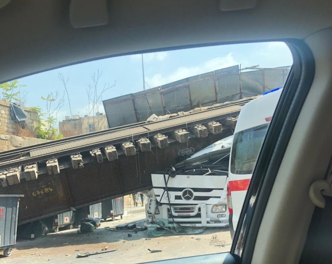 أسفر انهيار الجسر الدي يقع بمنطقة الجميزة بالعاصمة اللبنانية بيروت، عن جرح شخص وتحطم شاحنة كانت تمر أسفله.
