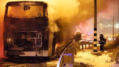 بالفيديو: النيران تلتهم حافلة مدعويين لحفل زفاف !!