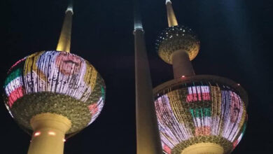 بعد تكريم البنك الدولي.. أبراج الكويت تتزين بصورة أمير البلاد