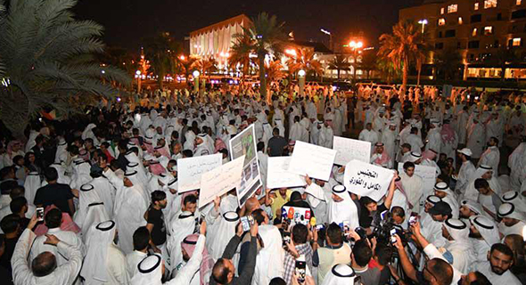 مواطنين يتجمعون في ساحة الإرادة مطالبين بإسقاط القروض وحل قضية البدون