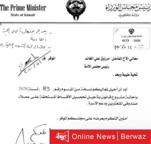 الحكومة تحيل قانون تأجيل أقساط صندوقي المتعثرين ودعم الأسرة لمجلس الأمة